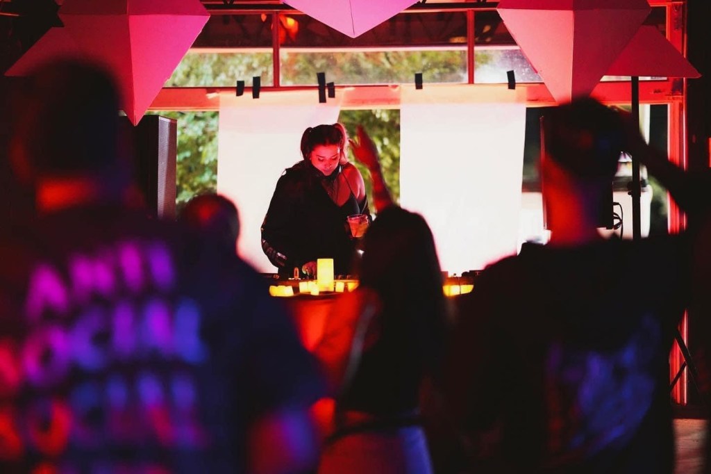Standing up in the house, overlooking the small crowd, and how it always overlapped behind, and sometimes right up and around the DJ and the stage.