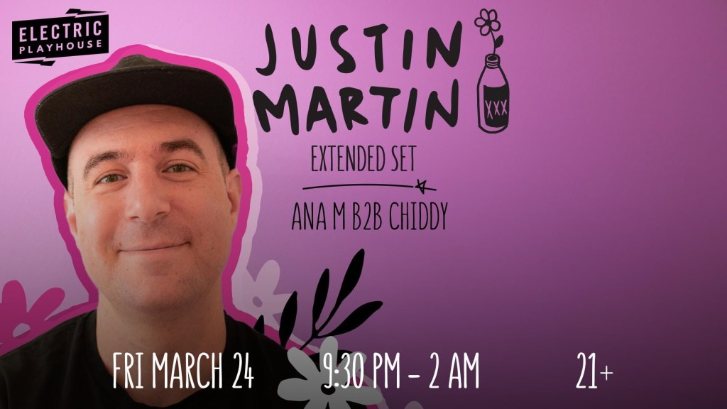 So, with that in mind, I’d like to tell you, that this Friday, March 24th, Justin Martin is returning to the 505, but this time to the Electric Playhouse.
