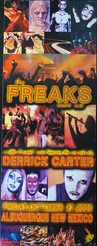 The first memory I have of Derrick Carter is when I must have been around sixteen years old, and the year was 2000, just before Halloween. It was for a rave called the Freaks Come Out, and it took place at the old NY Stock Exchange building over on 3rd and Central here in the 505.