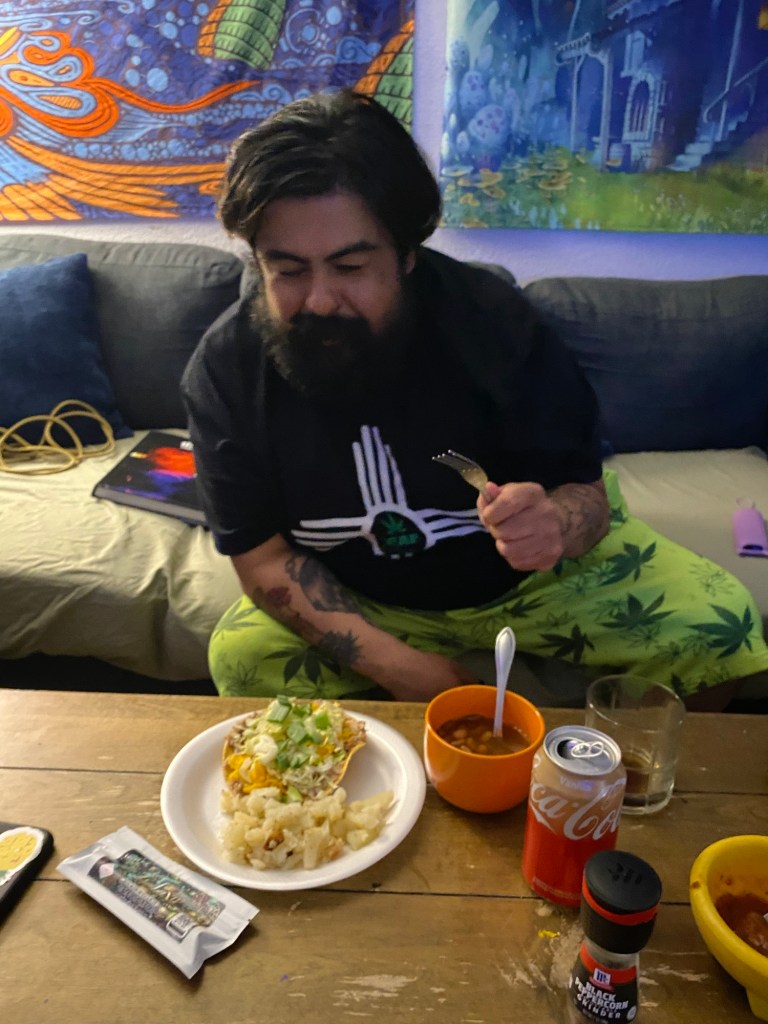 We agreed to meet around 8 pm at my house, and since Justin is a Vegetarian we agreed to an all-vegetarian meal, going with a traditional New Mexican dish that I’m sure we both ate many times growing up.