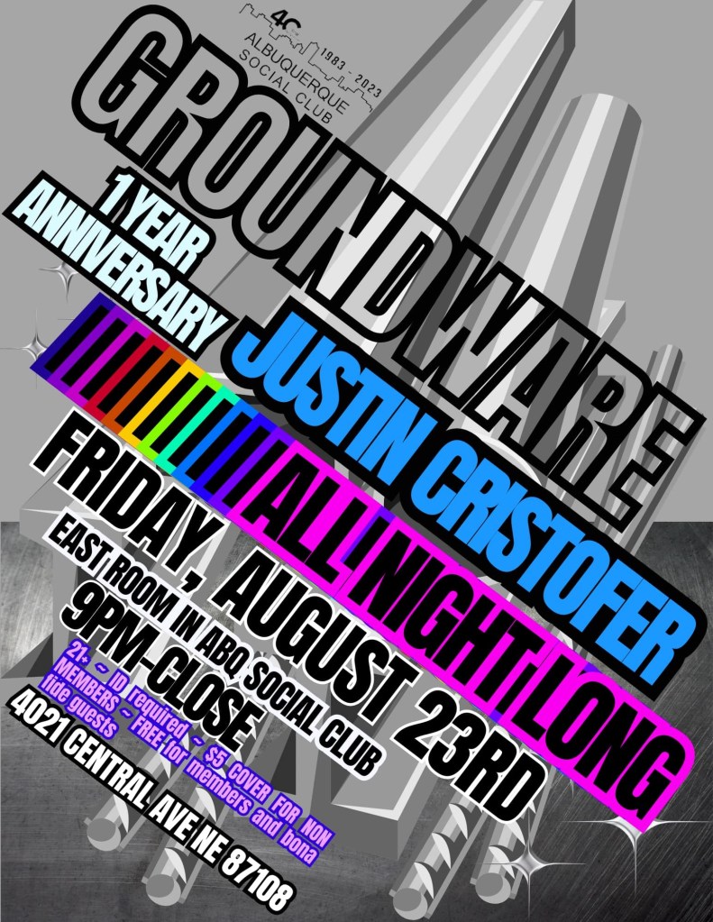 I can’t wait to see how Justin’s voice and experience will contribute more to the 505 and he can be heard playing at the Albuquerque Social Club with his club night he calls Groundware, where he focuses on playing with different DJs from the 505 every week.